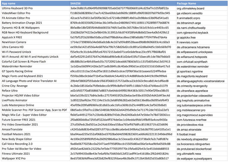 The premium SMS scam campaign — dubbed “UltimaSMS” — is believed to commenced in May 2021 and involved apps that cover a wide range of categories, including keyboards, QR code scanners, video and photo editors, spam call blockers, camera filters, and games, with most of the fraudulent apps downloaded by users in Egypt, Saudi Arabia, Pakistan, the U.A.E., Turkey, Oman, Qatar, Kuwait, the U.S., and Poland.