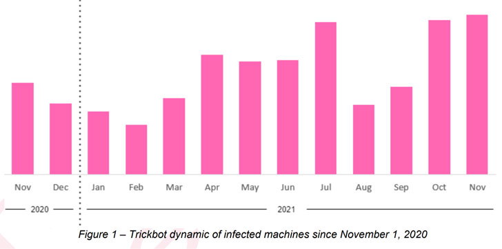 “Emotet is a strong indicator of future ransomware attacks, as the malware provides ransomware gangs a backdoor into compromised machines,” said the researchers, who detected 223 different Trickbot campaigns over the course of the last six months.