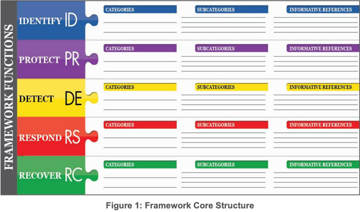 The framework has a five-stage core structure: Identify, Protect, Detect, Respond and Recover. I’m going to break them down into bullets for you.