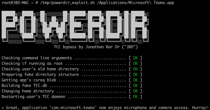 “We discovered that it is possible to programmatically change a target user’s home directory and plant a fake TCC database, which stores the consent history of app requests,” Jonathan Bar Or of Microsoft 365 Defender Research Team said. “If exploited on unpatched systems, this vulnerability could allow a malicious actor to potentially orchestrate an attack based on the user’s protected personal data.”