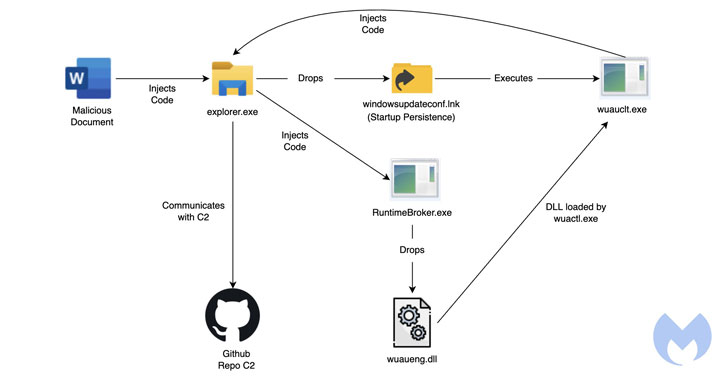The cybersecurity firm characterized “wuaueng.dll” as “one of the most important DLLs in the attack chain,” whose main purpose is to establish communications with a command-and-control (C2) server – a GitHub repository hosting malicious modules masquerading as PNG image files. The GitHub account is said to have been created on January 17, 2022.