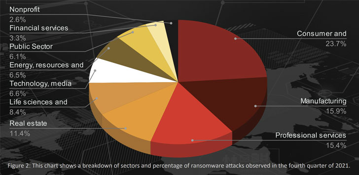 “Attacks impacting the consumer and industrial products sector rose by 22.2% from the third quarter of 2021, making it the most-impacted sector during the fourth quarter,” the researchers said.