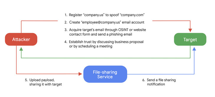 “At the final stage, the attacker would upload the payload to a public file-sharing service (TransferNow, TransferXL, WeTransfer or OneDrive) and then use a built-in email notification feature to share the file with the target, allowing the final email to originate from the email address of a legitimate file-sharing service and not the attacker’s email, which presents additional detection challenges,” the researchers said.