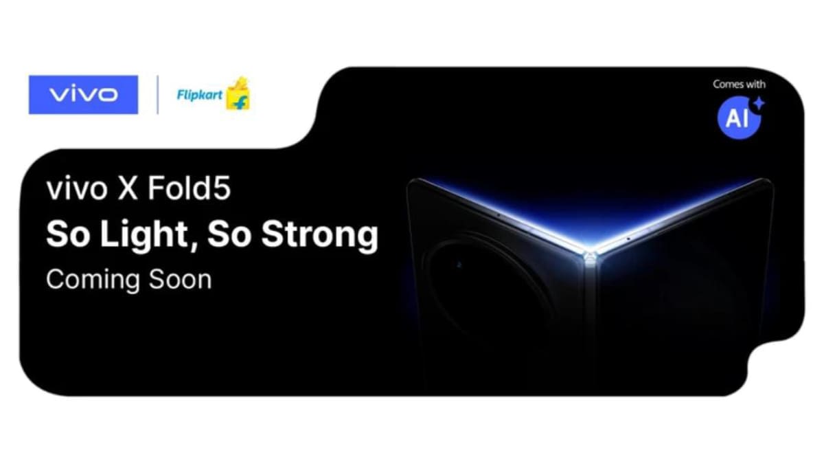 Vivo has teased the upcoming India launch of the X Fold 5 foldable phone in an X post. The exact launch date of the smartphone is expected to be announced soon. A Flipkart banner has confirmed that the foldable handset will be available in the country via the e-commerce site.