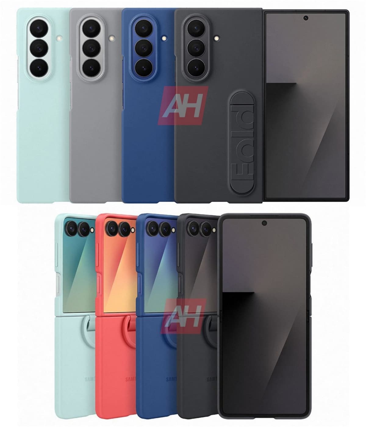 Silicone cases for the Samsung Galaxy Z Fold 7 (top) and Galaxy Z Flip 7